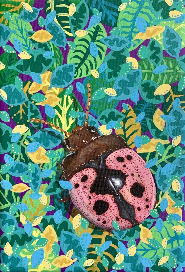 Pablo the Pink Tree Beetle - 5x8" acrylic on stretched canvas, 2022 (Sold)