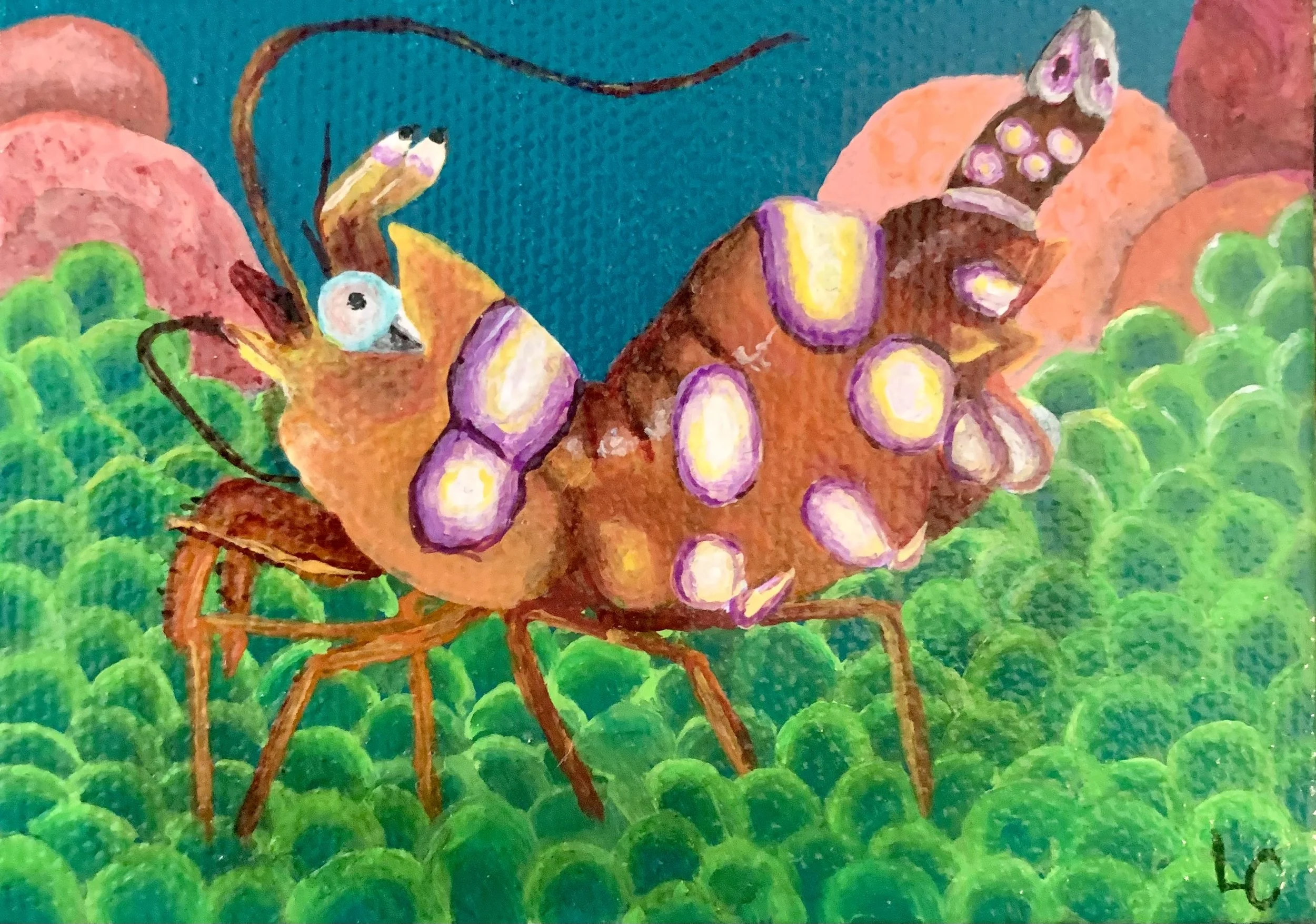 Sexy Shrimp - 2.5x3.5" acrylic on stretched canvas, 2023