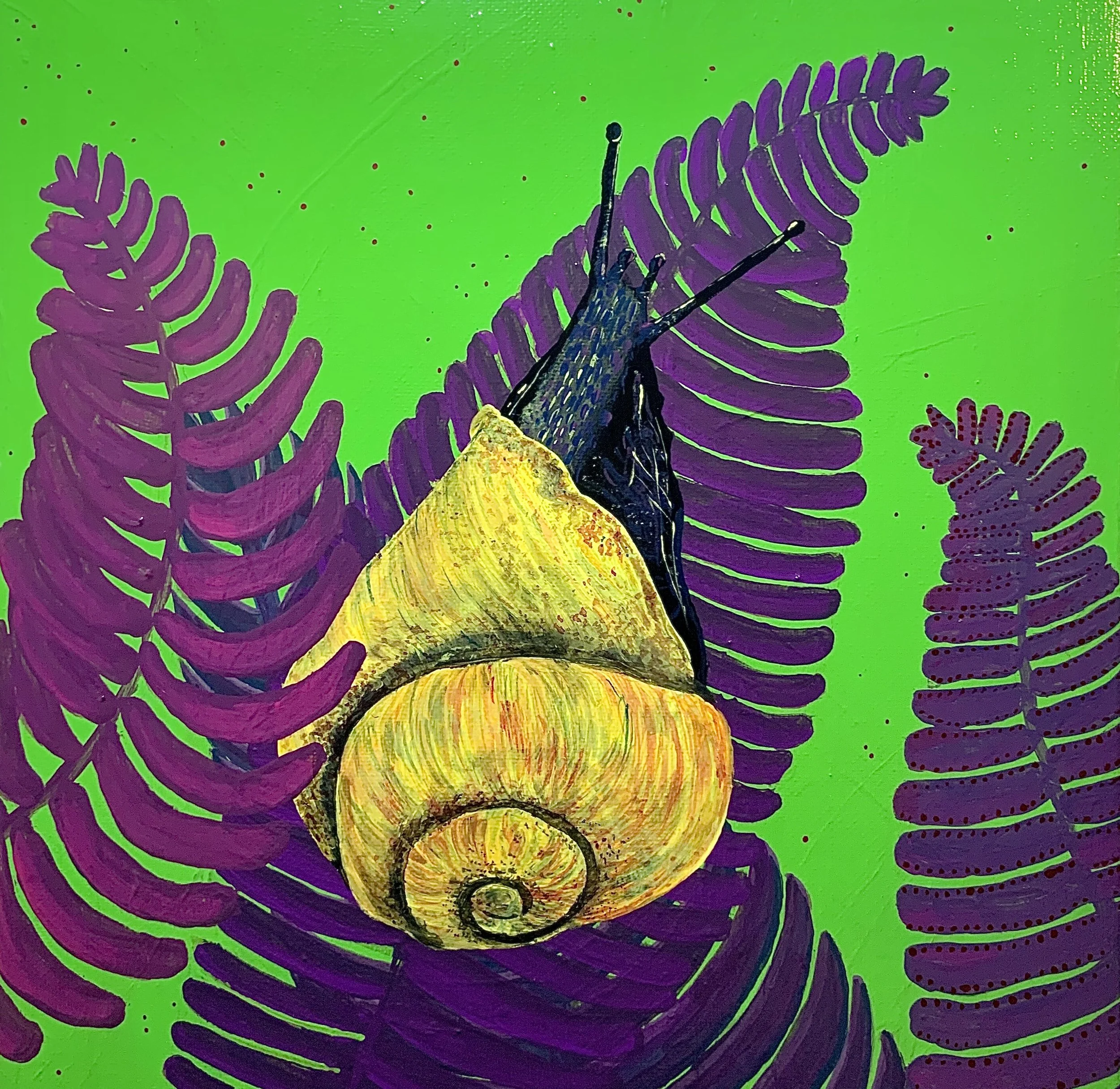 Sol the Cuban Land Snail - 10x10" acrylic on stretched canvas, 2022