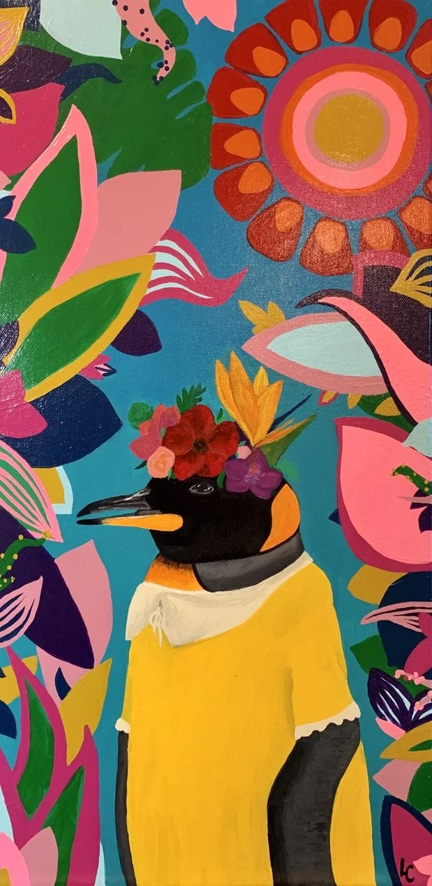 Frida the Penguin, 12x24" acrylic on stretched canvas, 2021 (Sold)