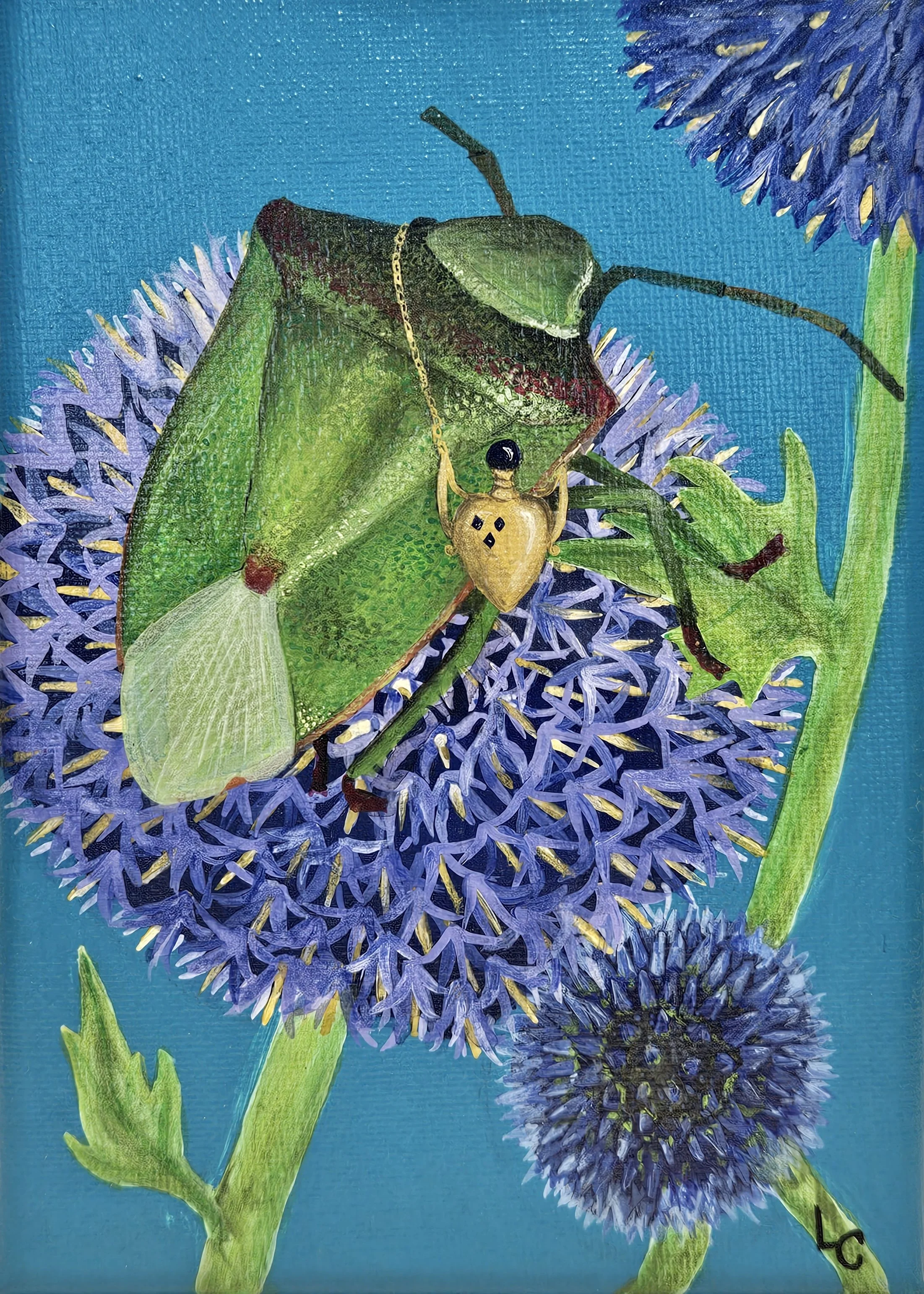 Sebastian the Stinkbug - 5x7" acrylic on stretched canvas, 2021