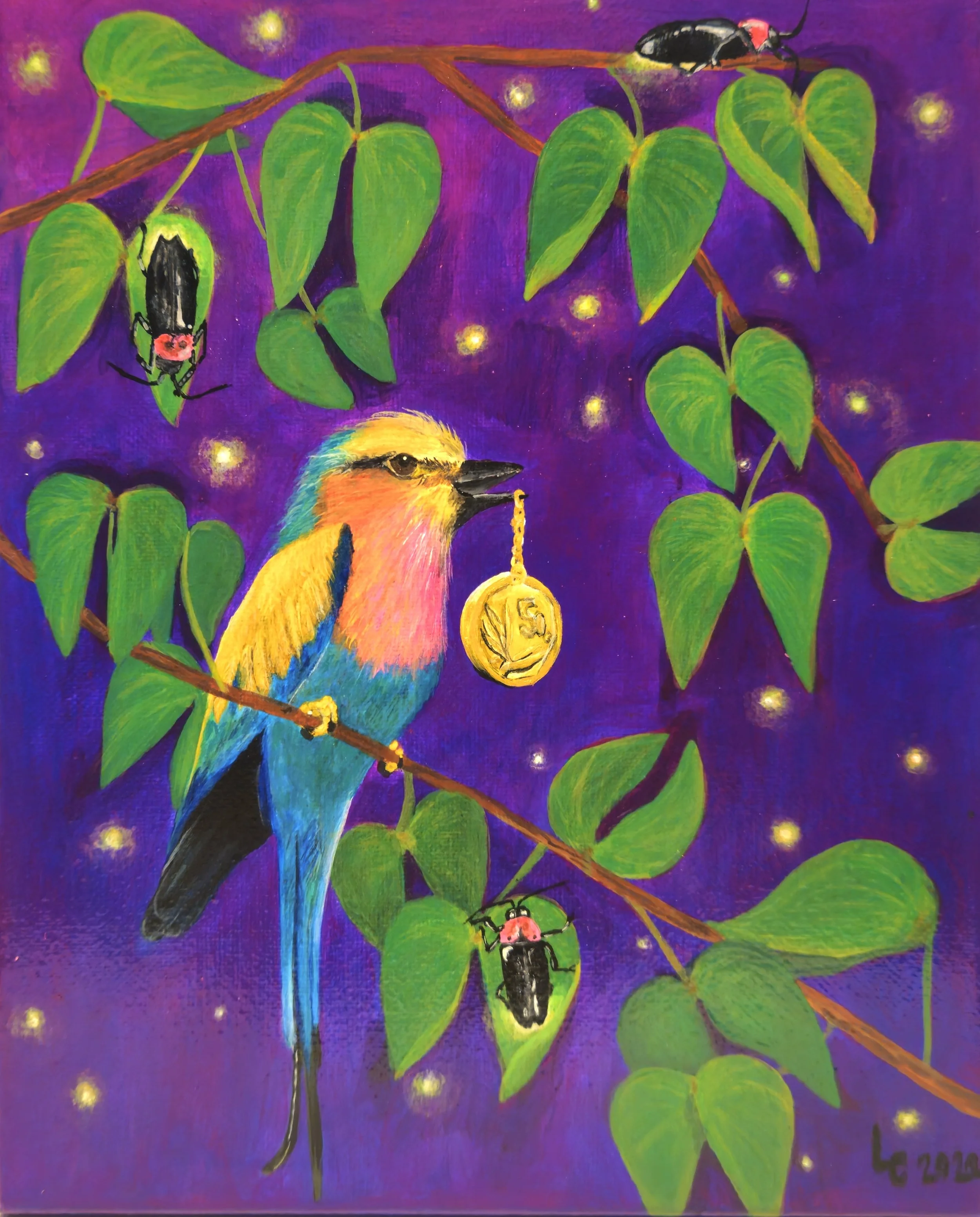 Lilac Roller - 8x10" acrylic on stretched canvas, 2024